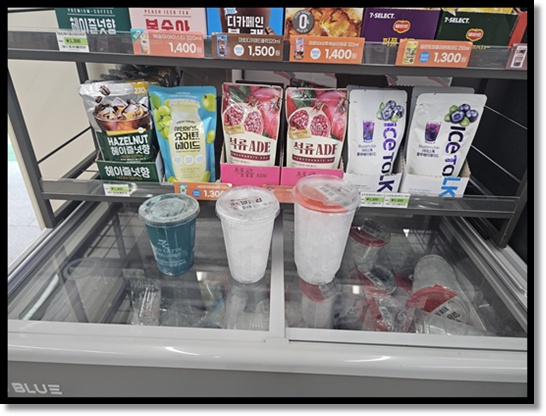 편의점 얼음컵과 파우치음료 결합방법